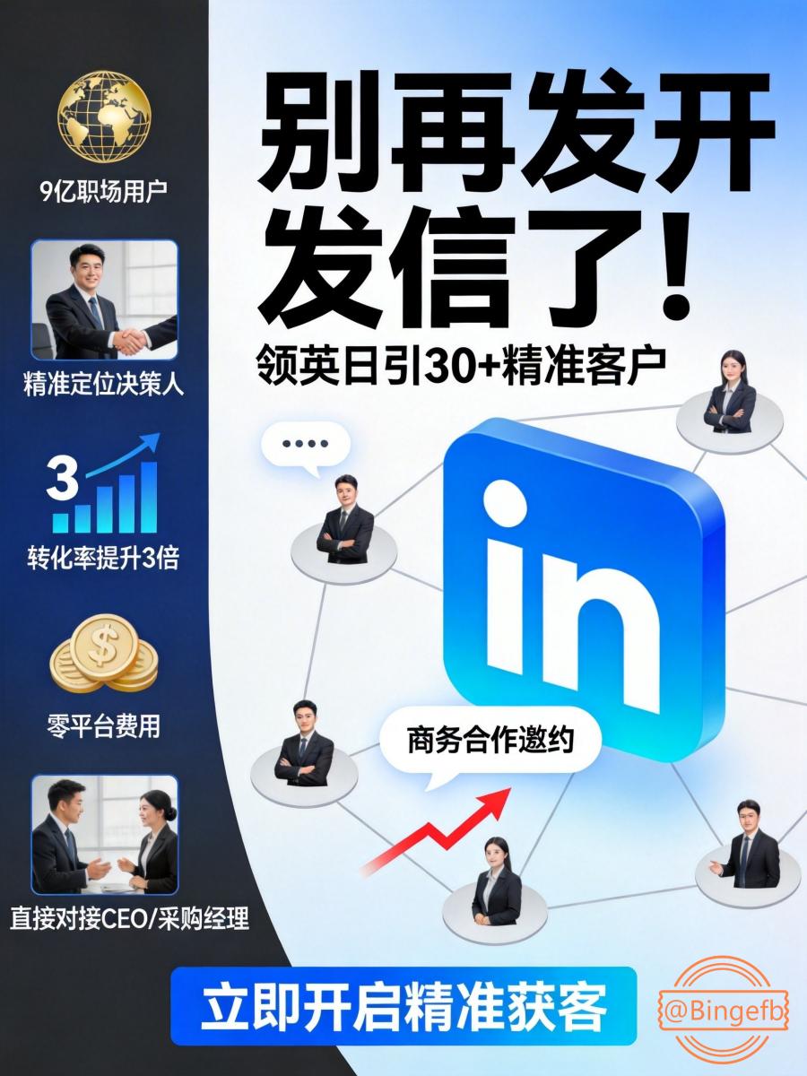 简介核心逻辑转变:从狩猎到吸引 传统开发信是 主动推销 (Outbound),而LinkedIn高效获客是 价值吸引 (Inbound)。数据显示,社交销售领导者比同行创造 多45%的销售机会 。 一、账号基建:...
