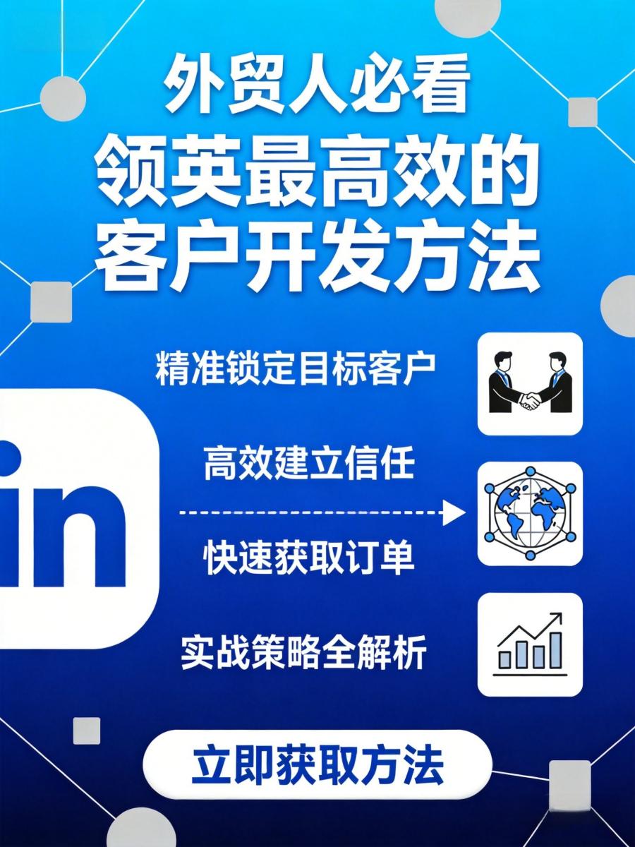 简介一、为什么领英是B2B外贸第一阵地? 核心优势对比: 渠道 客户质量 转化周期 竞争强度 成本 领英 ⭐⭐⭐⭐⭐ 决策者直接触达 2-4周 低 时间投入为主 阿里国际站 ⭐⭐⭐ 中间商多 1-...