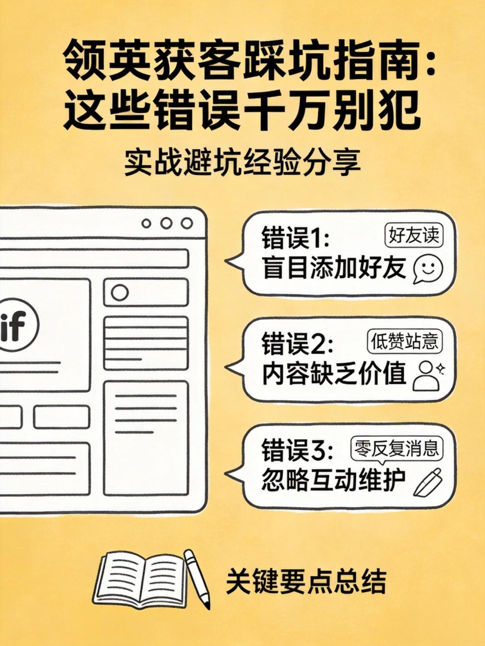 核心关键词:LinkedIn获客, 领英开发客户, LinkedIn营销错误, B2B社媒获客, LinkedIn账号被封, 外贸客户开发, LinkedIn个人资料优化
