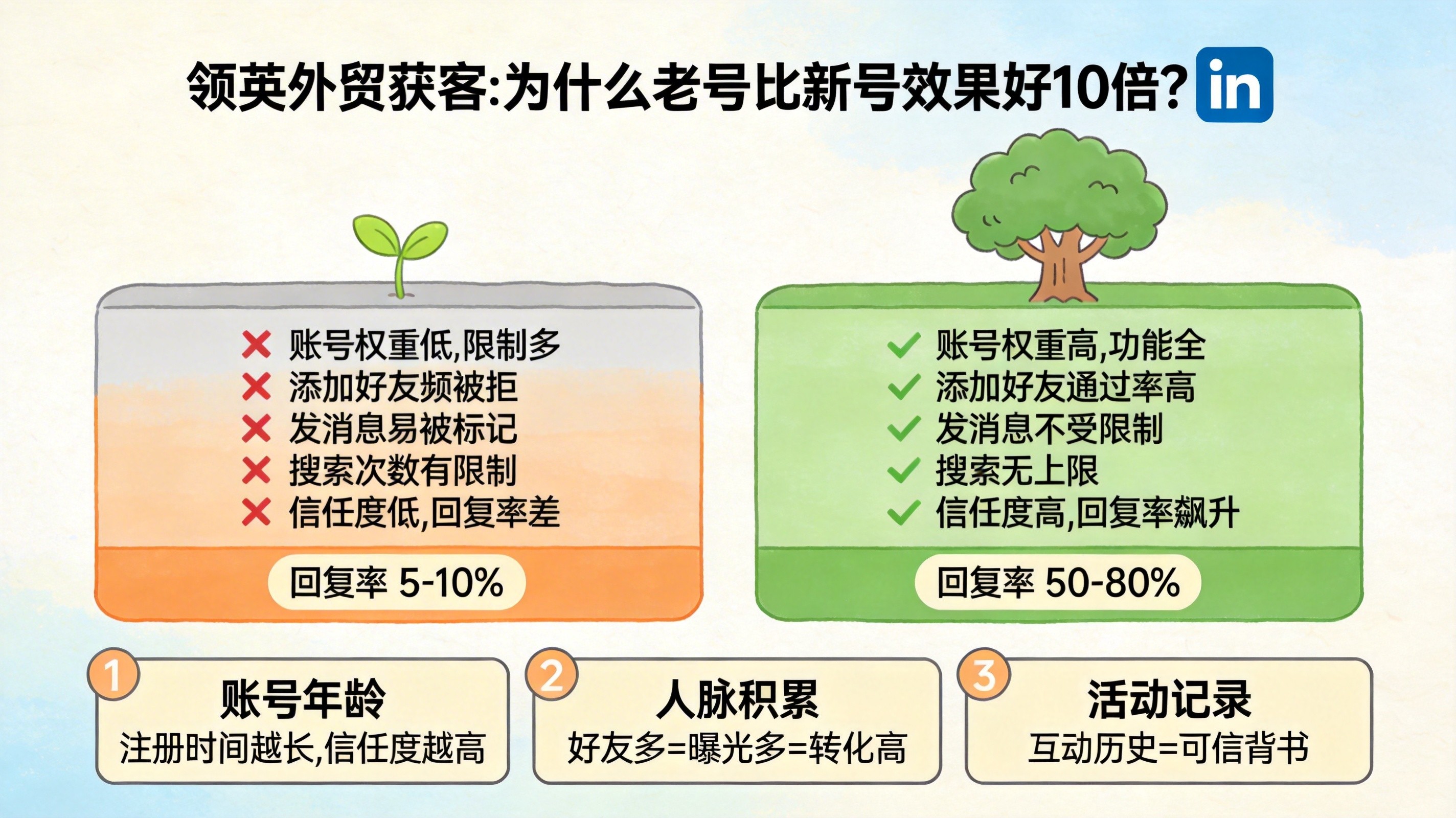 领英外贸获客:为什么老号比新号效果好10倍?